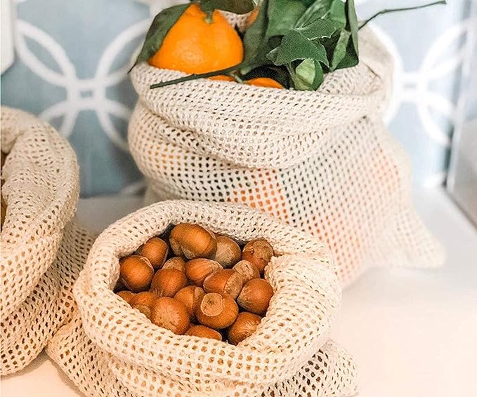 7.KerKoor Reusable Organic Cotton Produce Bags – Set of 9 Cotton Mesh BagsÂ