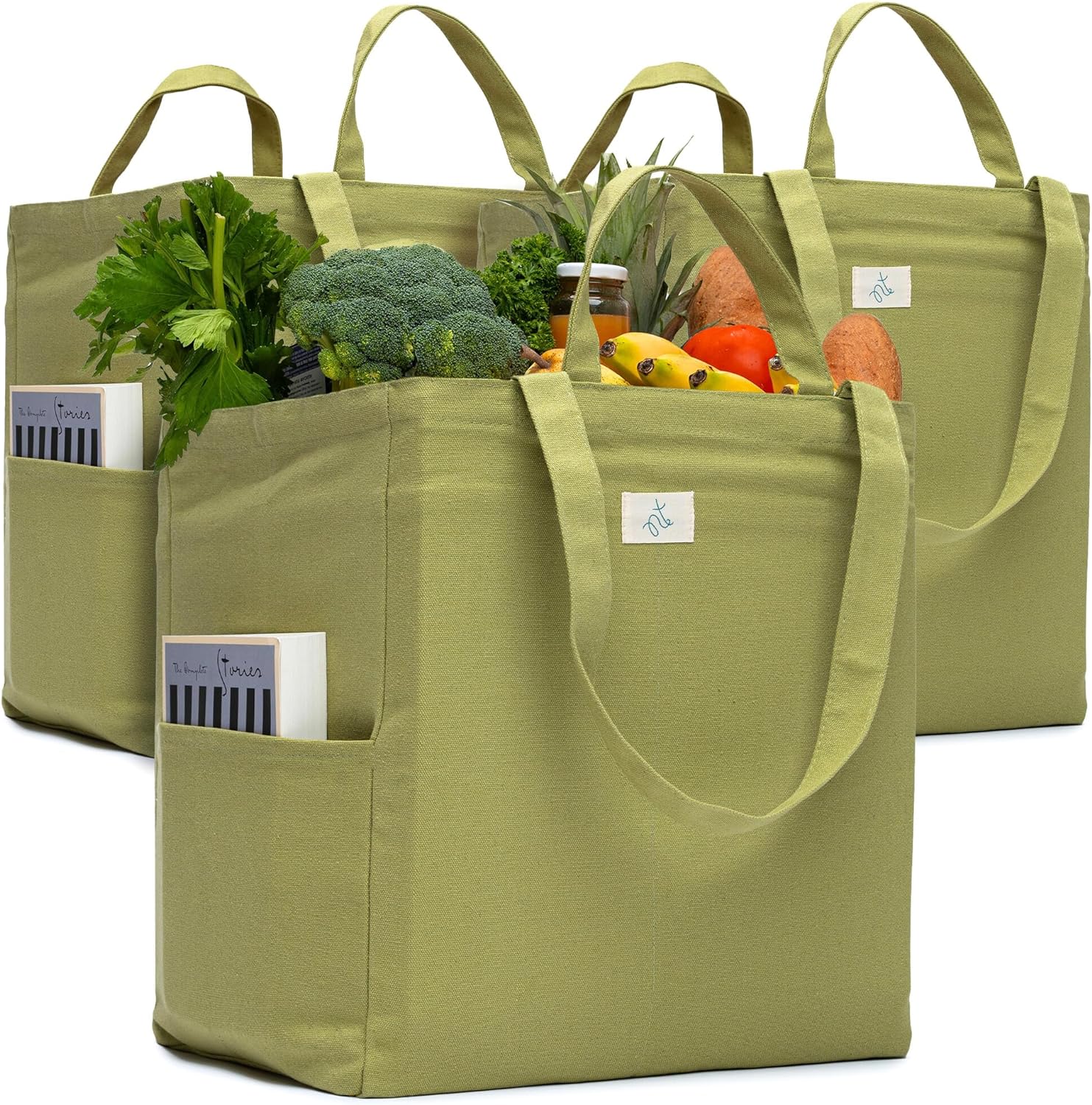 4. Nook theory reusable Grocery Bags – 100% Cotton 12Oz Canvas Grocery Bags with Handles